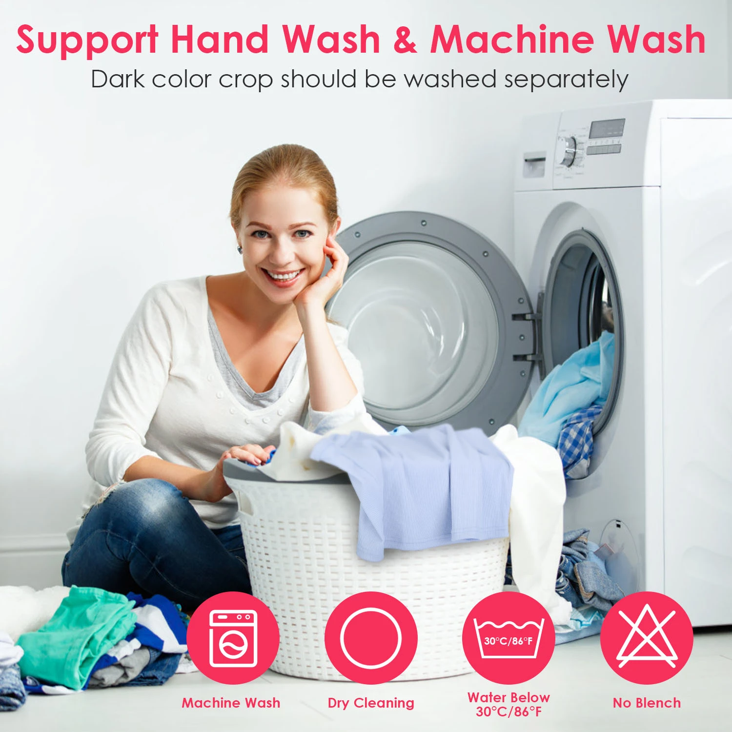 - *Machine & Hand Washing*:Support hand wash or machine wash,but please note that the water temperature must be kept below 30°C/86°F. It can be dried but not bleached. Dark color crop should be washed separately.