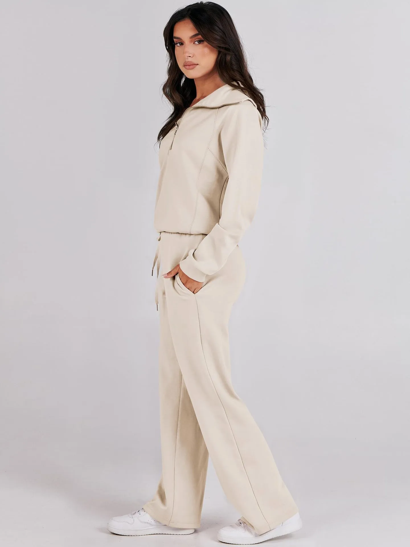Leisure Sports Suit Long-sleeve Zipper Sweatshirt Wide Leg Pants Two-piece Set