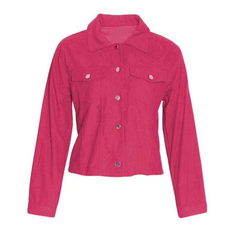 Upgrade your seasonal wardrobe with this stylish Women's Corduroy Long Sleeve Jacket! Perfect for spring and fall, this 100% polyester casual coat features a button-up front, flap pockets for a chic touch, and a relaxed fit for all-day comfort. The soft textured corduroy fabric adds a trendy yet timeless look, while the lightweight design makes it ideal for layering. Available in sizes S to XXL, it’s a versatile piece that pairs effortlessly with jeans, dresses, or workwear. Stay cozy and fashionable in this must-have jacket!