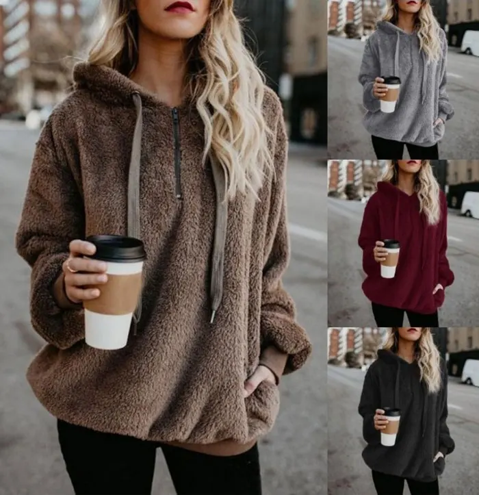 Women's Polerones Fleece Hoodies Long Sleeve Hooded Pullover Sweatshirt Autumn Winter Warm Zipper Pocket Coat Female Sweatshirt
